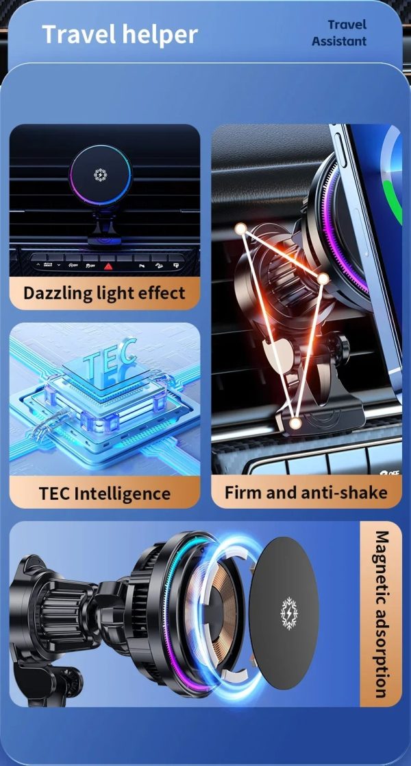 ⭐ KEYWORDS: Magnetic car wireless charger, iPhone MagSafe car charger, Fast car phone charger, Car phone holder for iPhone, Wireless charging car mount, Cooling wireless charger, RGB LED car charger, 30W charger for iPhone car, MagSafe compatible car charger, wireless car charger for iPhone, Qi2 magnetic car charger, car vent phone mount charger, fast charging car mount, auto-align phone holder, cooling fan car charger, dashboard charging mount, one-handed phone mount, universal air vent charger, certified car charging accessory, smartphone charging dock auto