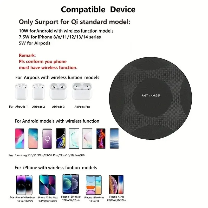 ✅ Universal Wireless Charger Compatibility – One charger for all your Qi devices