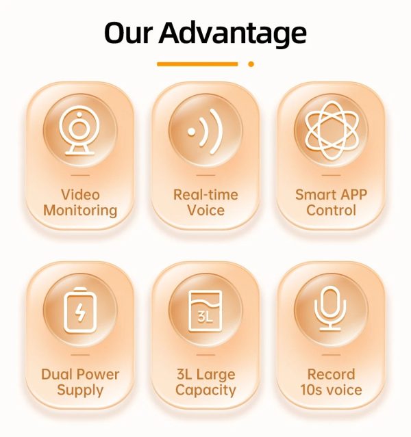 Our 3L automatic pet feeder holds enough food for multiple days, ensuring your cat and dog food dispenser keeps your pets nourished even when you’re away for extended periods.