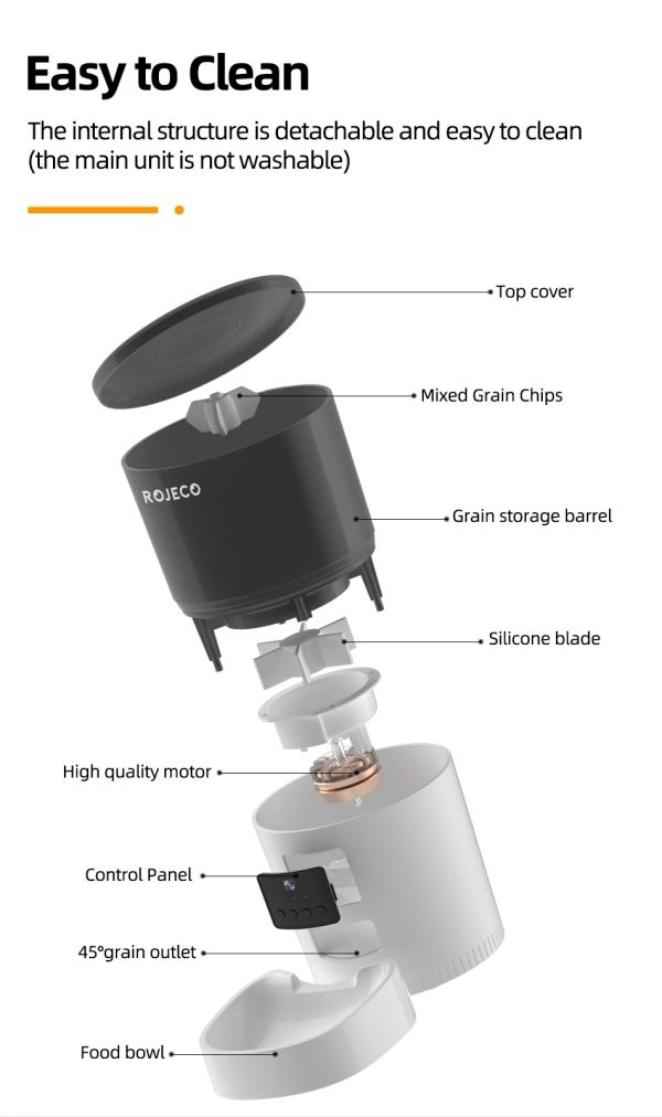 The ROJECO Automatic Cat Feeder with Camera is your all-in-one solution for hassle-free, intelligent pet feeding. This innovative smart pet feeder with camera combines WiFi app control, HD video monitoring, and voice recording to keep you connected with your furry friend at all times. Whether you have a cat or dog, this WiFi pet food dispenser ensures your pet is always fed on schedule.