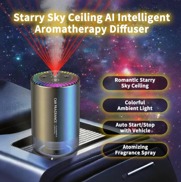#CarDiffuser #StarrySkylLight #SmartCarFragrance #LuxuryCarAccessory #AromatherapyCar #StressRelief #CarWellness #TravelAromatherapy #NebulaDiffuser #AutomativeSpa